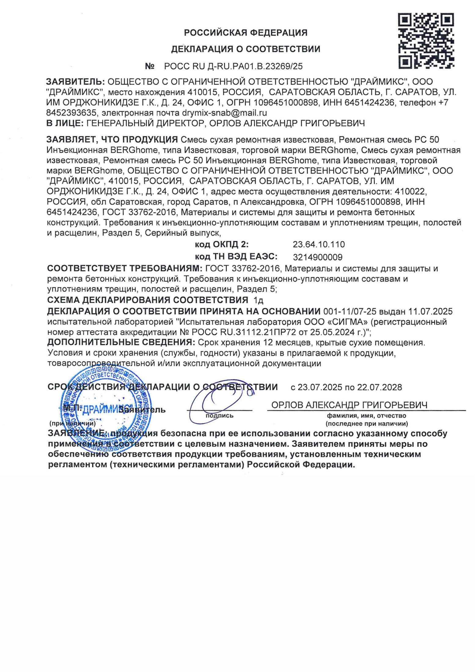 Смесь сухая ремонтная инъекционная известковая. ГОСТ 33762-2016.
